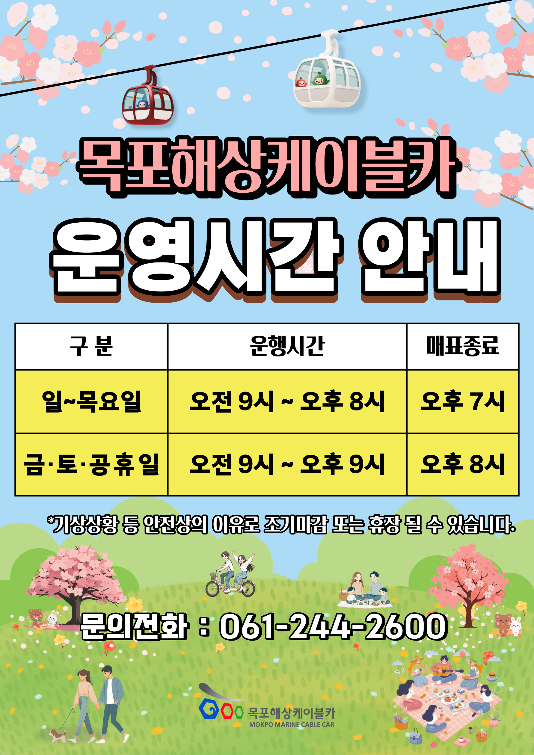 3월 1일부로 춘계운영시간으로 변경됩니다.