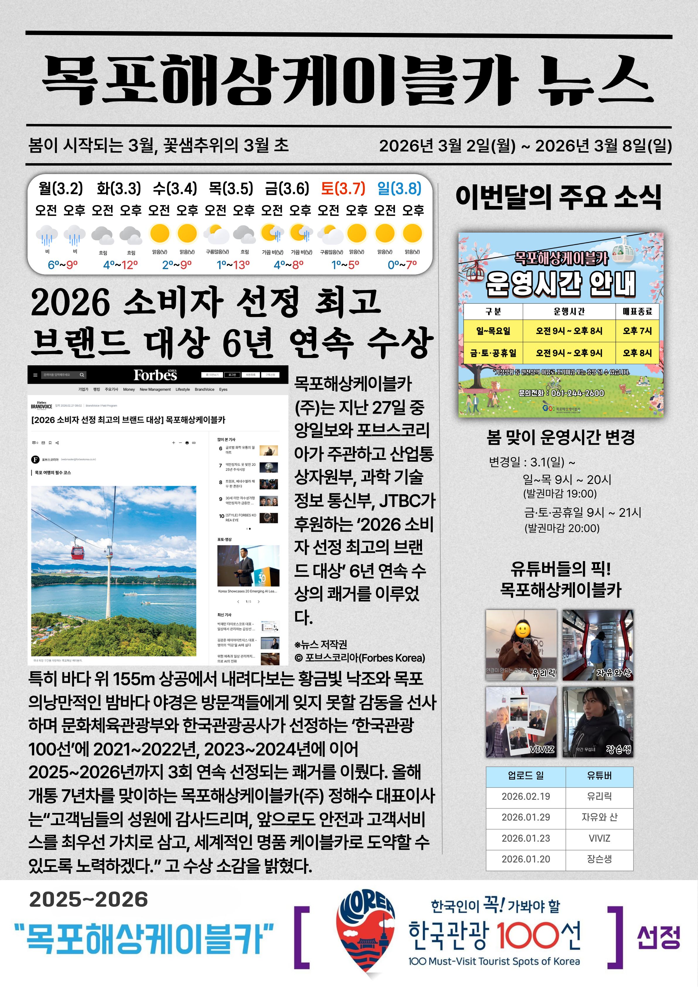 star 기상상황 등 안전상 이유로 사전에 공지없이 조기운행마감 또는 휴장